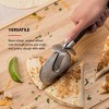 This pizza cutter has a comfortable, ergonomic handle. The blade is sharp, rolls smoothly, and cuts pizza easily. I actually use pizza wheels to cut quesadillas too! Another bonus is that it’s dishwasher safe!