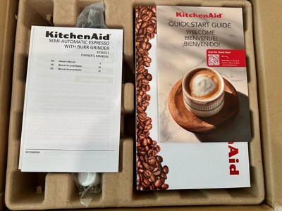 KitchenAid Semi Automatic Espresso Machine with Burr Grinder is designed for easy hands-on espresso exploration, take your espresso based drinks to the next level - create wherever your curiosity takes you - from espresso, American, latte, to cappuccino and much more. Includes smart dosing technology and "clean me" notifications.