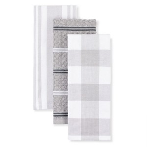 KitchenAid Stripe Gingham Dual Polyester Cotton Kitchen Towel 3-Pack Set, Matte Grey