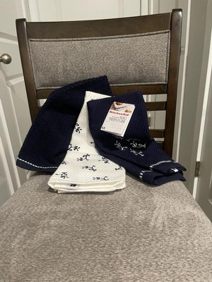 [This review was collected as part of a promotion.] These kitchen hand towels are the perfect look for hanging on the handle of my oven. The design is classic and easy to match with other decor. I was impressed that the design was sewn in rather than ironed on, which will help with the longevity. They feel thick and plush & are a nice size for drying off hands.