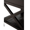 Handcrafted with care using the finest quality solid woodHand-finished with a Hickory Brown stain and a protective NC lacquer to accentuate and highlight the grain and the uniqueness of each piece of furnitureMultipurpose table can be used as an end table or side table. Looks great in your living room, great room, condo or bedroomFeatures one large drawer with metal drawer glides and an open bottom shelf providing ample storage space.Contemporary style includes a square edged table, Brushed Nickel pulls, X design detail and square legsAssembly Required