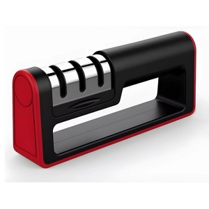 Keep your blades razor-sharp with this 3-stage knife sharpener, designed for efficiency, safety, and lasting performance. Featuring carbide, ceramic, and fine honing stages, it restores knives to peak sharpness with minimal effort. Its ergonomic handle and non-slip base provide stability and comfort for safe, controlled sharpening every time.