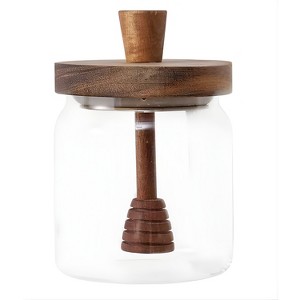 - Elegant glass design with wooden dipper for easy honey or syrup serving