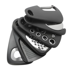 Tackle everyday kitchen tasks with ease using this compact 6-piece kitchen tool set, featuring a cheese grater, bottle opener, peeler, pizza cutter, garlic/ginger grinder, and herb cutter. Designed for space-saving convenience, each tool is crafted from durable, high-quality materials and built for daily use. Dishwasher-safe for quick cleanup, this set is a practical and efficient addition to any kitchen.