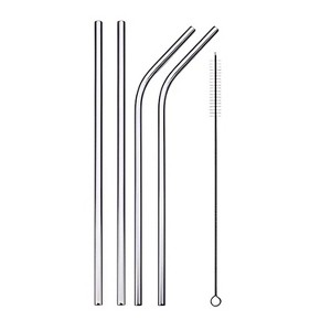 Kitcheniva Reusable Stainless Steel Drinking Straw with Cleaning Brush, 4 Pcs