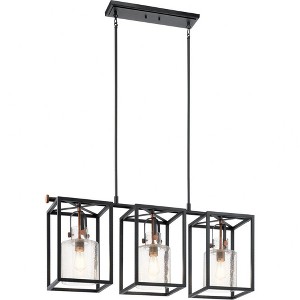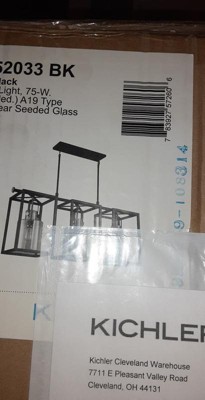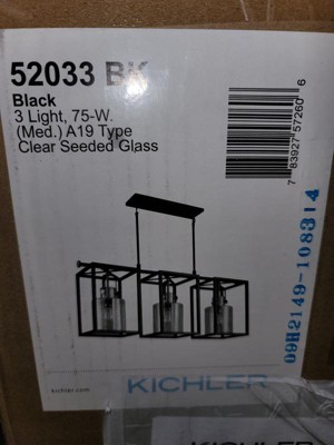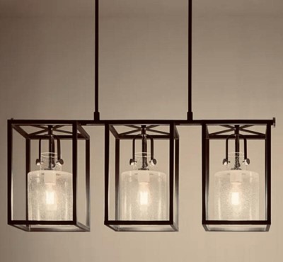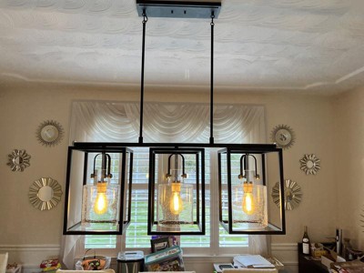 [This review was collected as part of a promotion.] This Kichler chandelier is beautiful. The 3 clear seeded glass lights illuminate brightly. The industrial linear design looks perfect in our kitchen over the island. It looks very elegant and matches my decor great. It was easy to install but is quite heavy. The quality is excellent. I would recommend this beautiful chandelier.