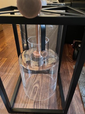 [This review was collected as part of a promotion.] This is just a beautiful well made light. It is bigger and more elegant in person. It is matte black with copper accents. The glass is thick and almost has a rain type look. It is going to make my entry way stand out. So happy with this stunning light.