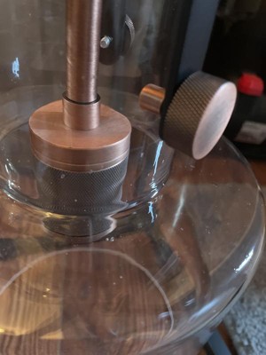 [This review was collected as part of a promotion.] We are remodeling our kitchen and I wanted to step it up ALOT and this chandelier and it will definitely do the trick! The size is EXTRA LARGE, so make sure it will fit where you are wanting it. The rod across the top of the lights ends in these pretty chrome pieces (see photo). And the glasses have this wonderful spatter (see photo) that adds so much character to the light. To me it is a perfect balance of style and industrial. Just unpacking it was a chore, so make sure you have help!