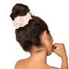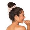- CHOICE OF COLOR: This pretty ponytail holder is available in blush and black, so you can choose the perfect shade to match your outfit. Whether you wear your hair up or down, these hair scrunchies for women are a great way to add a little something extra to your look.