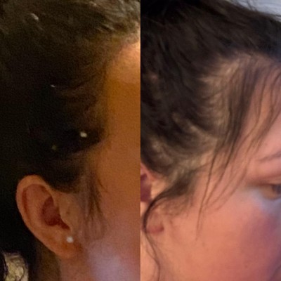 Never ever would recommend this product! I wish i could go back & never use it!!! It made my hair fall out in literal CLUMPS. I’ve always had thick hair, 2 post partums didn’t make my hair thin, but this did. I truly am brokenhearted over this. I feel so self conscious with this. After stopping use my hair has stopped falling out in clumps, but I am still so sad while waiting for the regrowth. The first photo is the beginning of the month & 2nd is the end. :( Horrific!!!