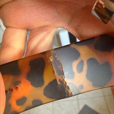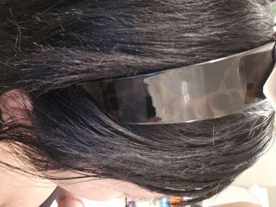 I loved the tortoise design and the fact that it was very shiny but each time I wore this, it was cracking little by little until eventually it broke. It was not durable or made to fit a regular size head without cracking to the point of no return.