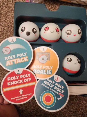 First of all, the Roly Poly are super cute, soft, squishy, expressive balls that my 4 year old daughter had fun playing with even without actually playing the actual game. The premise of the game is simple: collect the most cards/points. To acquire them you play a game of trump card but when you tie, epic battles happen in one of four different mini games using the Roly Poly balls. Of the four, Roly Poly Knock off was the only one that we didn't like as much due to having issues keeping the Roly Poly on the top of the box (it kept rolling off). Maybe can include a hole/groove or some sort of holder for the Roly Poly to make it easier to set off & a little more challenging to knock off.I love that there's also an option on how to play with special rules if adults play kids to level out the playing field.This is an amazingly fun game to play for hours of laughs and epic battles with your family and friends. Just make sure you have enough space around the house where things won't get broken =><=