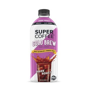 - COFFEE + VITAMINS: Try Super Coffee Dark Roast Unsweetened Cold Brew, packed with 150mg of caffeine, 0g of added sugar and 100% of daily value of B3, B6 and B12. Now in a convenient 50oz multi-serve bottle, it is the perfect coffee to keep you fueled at home.