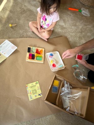 [This review was collected as part of a promotion.] My ~almost~ three year old loved this kit from kiwi co! He experimented with combining colors, how the volume changes when he adds blocks, and dilution. He enjoyed building different shapes with the blocks and naming all the colors. This kit teaches volume, color mixing, spatial awareness, problem solving, and fine motor skill. Amazing for 2.5-3.5 year olds.
