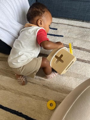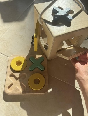The pieces are sturdy (love that these toys are wooden), easy for little hands to grasp, and the activity keeps my baby focused while building problem-solving and fine motor skills. I love that everything is simple, well organized, and encourages independent play while still being fun to do together. It’s such a thoughtfully designed, high-quality toy.