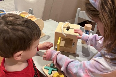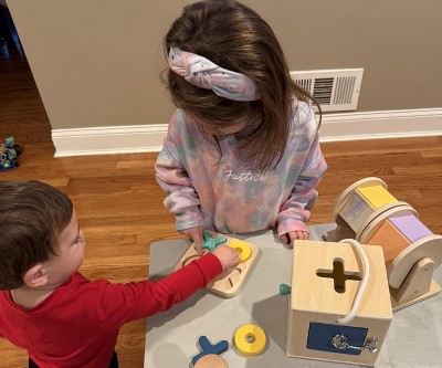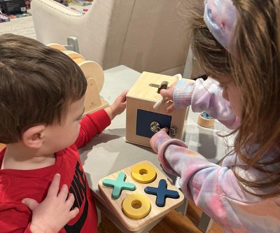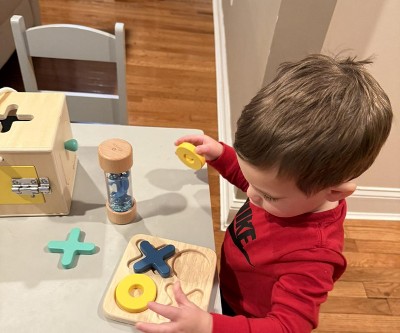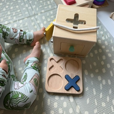 We love the KiwiCo Activity Play Center – Sort & Solve (6pc)! My son is especially into the X and O shapes, happily practicing putting them in and taking them out over and over again. I love how it naturally teaches in & out, matching, and sorting while also building patience and confidence through practice. It’s great for fine motor skills and grasp development—and it makes learning feel like play.