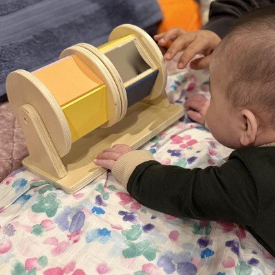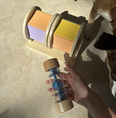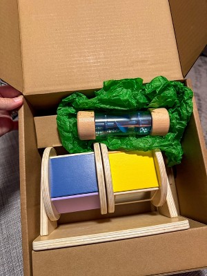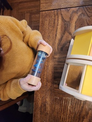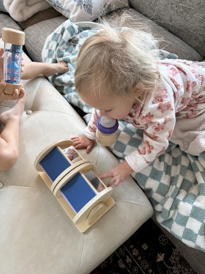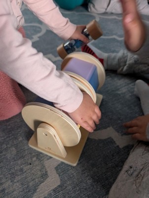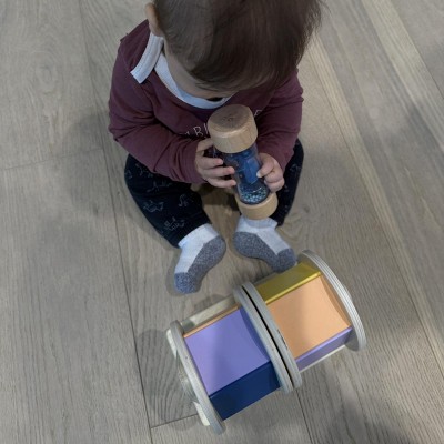 This is such a sweet, well made toy. The wooden pieces feel really sturdy and high quality, and it was super easy to set up right out of the box. My baby stays genuinely interested spinning and shaking the pieces, and I love that it encourages listening, curiosity, and simple cause and effect without being overstimulating.