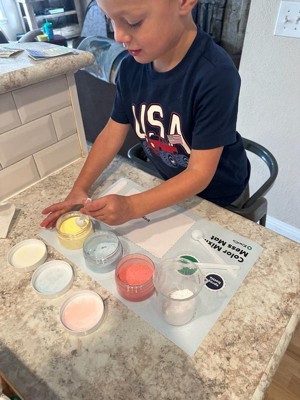 [This review was collected as part of a promotion.] We absolutely loved this kit. Very age appropriate for my almost 4 year old to do with a little help at times. The concept was great because we have been talking about color combos. He loved the fizzing and bubbling over. There were 3 activities in one kit; learning colors combos, making a card and learning reactions. Enough stuff came in the box for us to save and do it all again another day. We will definitely be purchasing a kit as it would make a great Christmas or birthday gift.