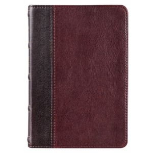 Study the Bible wherever you find yourself with the Merlot & Burgundy Two-tone Full Grain Leather Compact King James Version Bible. This stylish, yet compact Bible fits easily into a purse or tote and is super portable. With its compact size and fashionable cover design, it can also sit attractively on a side table or nightstand. This Bible's classic design features a two-toned cover in rich merlot and burgundy full grain leather. Gilt-edged pages match a foiled title, version reference, and decorative flourishes on the spine. An attached satin ribbon page marker is included for your convenience and topstitching detail on the cover adds a touch of design interest while increasing the cover's overall durability. For the most comfortable reading experience, this Bible opens flat and the 7-point text is printed in a double-column format with reader-friendly subheadings on each page. A thematic Scripture verse finder, 8 full-color maps, and a one-year reading plan further enhance the usability of this Bible. As with all our Compact Bibles, the words of Christ are printed in red ink. Surprise a loved one with the Merlot & Burgundy Two-tone Full Grain Leather Large Print Compact King James Version Bible for Christmas, or celebrate and commemorate your nephew's First Communion with this durable full grain Bible--a presentation page can be inscribed with a personal for the occasion. Classic King James Version, Two-toned full grain leather cover, Foiled spine title design, Flexcover, 7-point type, Gilt-edged pages, Attached ribbon marker, Double-column format, Lay-flat binding, Words of Christ in red ink, One-year Bible reading plan, Thematic Scripture verse finder, Reader-friendly subheadings, Presentation page, Packaged in gift box, Size 6.7" x 4.7" x 1.1" (170 x 119 x 28mm)