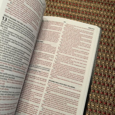 “I was pleasantly surprised by this Bible. The imitation leather cover is perfectly acceptable, the pages aren’t overly thin, and I really like the red lettering in the New Testament. Definitely a good buy for just five dollars.”