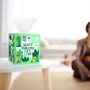 The design on this Kleenex box is whimsical with a positive message on it - something we can all benefit from! The message on the box I am reviewing said Take It One Day At A Time. The design was a variety of plants and cats with a green and pink color scheme. It was definitely different than other tissue boxes therefore eye catching! The quality of the actual tissue was fine - nothing special but completely fine.