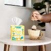 Colorful box and art design fits well in any room. Great quality tissue that doesn't tear easily. Holds up well during this crazy cold season. The texture is soft enough for sensitive skin but still durable