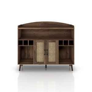 Klimar Open Shelves Buffet Distressed Walnut - miBasics: Midcentury Server, 6-Bottle Cubbies, Woven Door