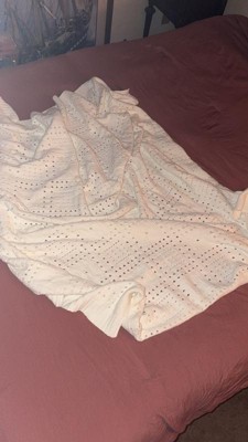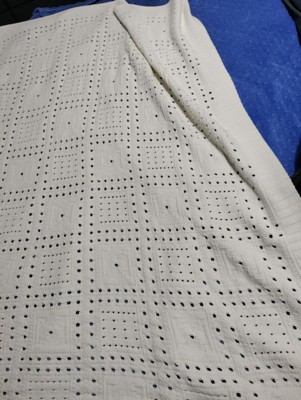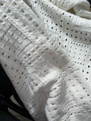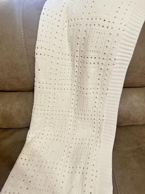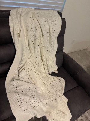[This review was collected as part of a promotion.] I love this ivory knit throw blanket. Cute hollow design and cute stitching. Super soft, feels comfy and I love to use this while relaxing. Would definitely recommend!