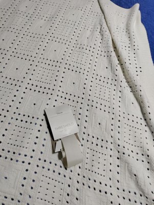 [This review was collected as part of a promotion.] Threshold knit throw as a wonderful feel to with the excellent design that enhances the texture and the lovely ivory color that goes with just about anything easy machine washability Great quality