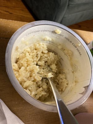 [This review was collected as part of a promotion.] I made this risotto at work with left over chicken. It was real easy to make. I just added water and microwaved it for 2 an a half minutes. The cheesy flavor was good and the texture was fluffy. I liked that I had a delicious side that tasted like I made it at home. This can also be eaten without another food. I received this product for free from Topbox Marketing for testing and review purposes.