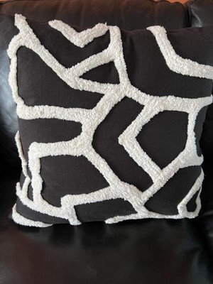 Kobo Tufted Decorative Pillow White/Black - Rochelle Porter: Cotton Square Indoor Cushion, Geometric Design, Machine Washable