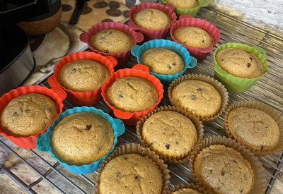 Pretty good muffins, easy to put together, but they need more chocolate chips. Next time I'll add some extra. They definitely taste/smell like a 'healthy' version of a regular muffin, but not in an unpleasant way. Taste will (obviously) be improved by a few more chocolate chips in the mix and a few sprinkled on top.