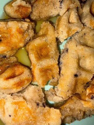 [This review was collected as part of a promotion.] We weren’t too fond of these. They’re extremely thick and tasted more powdery than anything. The whole box made enough to feed a family for breakfast with some left over. The crumb was good too. Overall, probably wouldn’t buy again