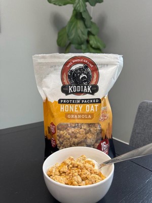 [This review was collected as part of a promotion.] Kodiak Honey Oat Granola comes in a sturdy, resealable bag with the brand’s signature rustic design that keeps the product fresh and easy to store. Made with whole grain oats and sweetened with honey, the ingredients are simple and wholesome, offering a nutritious boost with added protein. The texture is satisfyingly crunchy with clusters that hold up in milk or yogurt, and the taste is mildly sweet with a natural oat-and-honey flavor that feels hearty and balanced. Overall, it’s a fresh, wholesome granola that works just as well as a snack as it does in a breakfast bowl.
