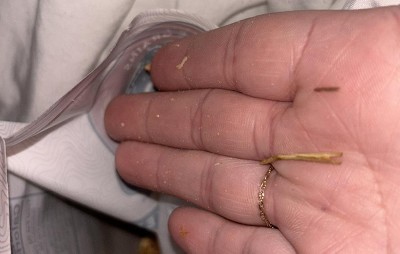 We are sorry for the experience you had. The material you are seeing is the hull (or the husk) of the oat. We have practices in place to reduce the hull material in our oats but due the nature of our oats, these hulls sometimes get through to the final product. We would really love to collect information and make it up to you! Please email us at flapjacks@kodiakcakes.com