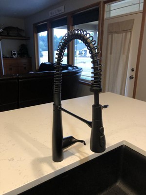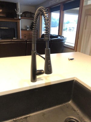 [This review was collected as part of a promotion.] We had this faucet installed for our home build and we are so happy with it. The beautiful design is a centerpiece on our kitchen island. The sweep spray is the perfect feature for rinsing off dishes.