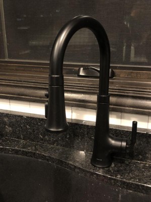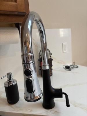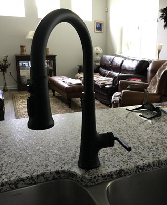 [This review was collected as part of a promotion.] Love this faucet! I have never been disappointed with the Kohler brand of faucets. The look is so elegant to me, the finish is just perfect for my kitchen. I love the black color, we have a black sink and it goes perfectly with it. The installation was so easy, only took about 30 minutes. The pull down handle is very smooth and the on and off handle is also smooth to use. The height of the faucet is perfect, its a little taller than my last kitchen faucet but I love the height much better. I can pull the handle out and fill my pot with water without holding them which to me is so great. When I have people over they all love the look of the new faucet. Great Kohler Faucet!