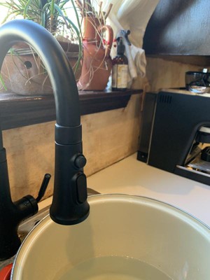 [This review was collected as part of a promotion.] First I will start with installation. I am not a licensed plumber but I do a lot of DIY projects.This was the easiest replacement I’ve ever done.It took less than an hour start to finish.Next,the features I LOVE are the 3 function buttons that switch from stream to aerate and the round button is boast for faster filling .The pull down spout has a strong magnetic docking which prevents hanging. Last is design , I have tall big pots the high arch spout leaves plenty of room to clean or fill pots . The spout also swivels, awesome ! Although the Matte black color and style calls for a more modern minimalist kitchen, I found the color and design was warm enough to fit in my Mediterranean design house. I highly recommend due to quality, design and features .