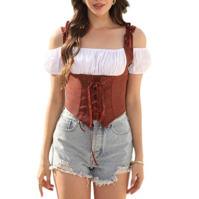 Women Pirate Renaissance Vest Cosplay Costume Waistcoat Halloween Bodice