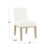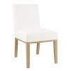 I was excited to inbox this chair. the upholstery is lovely. It is a soft white that doesn't have a yellow undertone. The stain on the wood legs is a neutral light brown. That's where the positives end. The cushions are as hard as a rock. The back has no lumbar support. The seat depth is very short and I am a petite 5'4" woman. This shallow depth is uncomfortable and makes it too limited to use a lumbar pillow. Unfortunately one has to assemble the chair to discover how uncomfortable it is. I bought this to use as a desk chair. as much as I hate the thought I may have to disassemble it and return it.