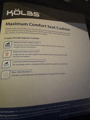 Kolbs Extra Large Seat Cushion | Stylish Plush Velvet Cover | X-Large Memory Foam for Office Chair, Carry Handle Extra Large