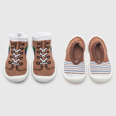 Komuello Toddler Sock Shoes Combo Set – First Walker Baby Shoes Flat brown stripe/Runner Brown - 1 of 4