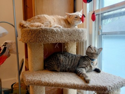- Bells in gloves and rattle in KONG speedbag prolong play