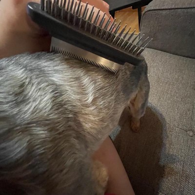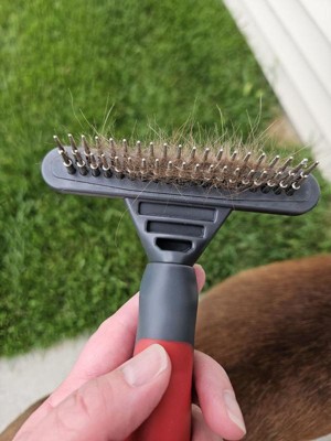 [This review was collected as part of a promotion.] I am always looking for a good dog brush that can get the extra shedding long hair out without hurting the dog. This brush did just that. It has 2 different sides so you can rake the dog as well as deshed the dog. It has a nice big handle with a comfortable grip making it comfortable for you to brush your dog with ease. Highly recommend for fluffy long haired dogs.