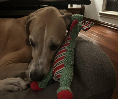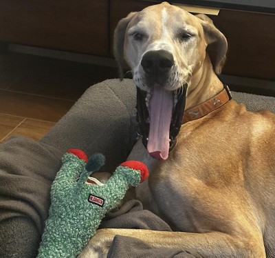 My Great Dane absolutely loves this and is treating it like his baby, carrying it everywhere. He would rate this 5 stars.