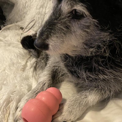 The small size makes it harder for our little dog to get the treat out as quickly and he loves the challenge. He's 5 years old now and he still had the original Kong but it was finally cracking.
