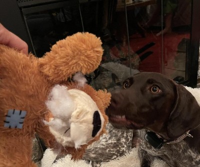 Love the durability of Kong toys. The dog enjoys the squeaks and size of this bear.