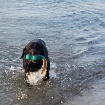 Favorite dog swimming toy Toss into lake, it floats and dog swims with it