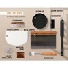 Includes a 3.4 qt cast iron Dutch oven with lid and lid lever, and a complete sourdough starter and baking kit: 24 oz glass jar with measurements, metal cap, silicone spatula, cloth cover, feeding band, thermometer, two 9.8" banneton baskets (up to 2 lb), washable liners, metal and plastic scrapers, beechwood scoring lame with cover, and 4 extra blades. Also comes with a beginner-friendly guide.