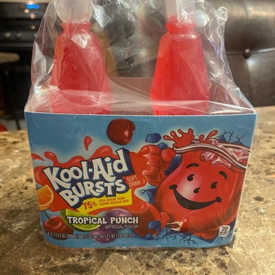 Kool-Aid Bursts Artificially Flavored Tropical Punch Drinks are a fun way to keep your kids hydrated. Our ready-to-drink bottles make it easy to bring a tasty tropical punch flavored drink with you anywhere. Quench your thirst with the refreshingly sweet flavor of tropical punch. With 75% less total sugar than leading regular sodas, this artificial drink is a great choice for kids (this product has 5 grams of sugar; leading regular sodas have 23 grams of sugar per 6.75 fluid ounce serving). Enjoy a tropical punch artificially flavored drink at school or at home. This convenient 40.5 fluid ounce pack includes six 6.75 fluid ounce drink bottles. Store them in the fridge so they're always cold and ready when you're craving a refreshing treat.